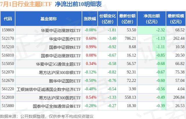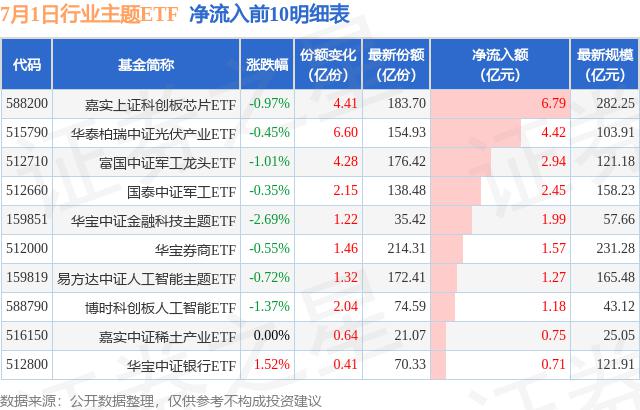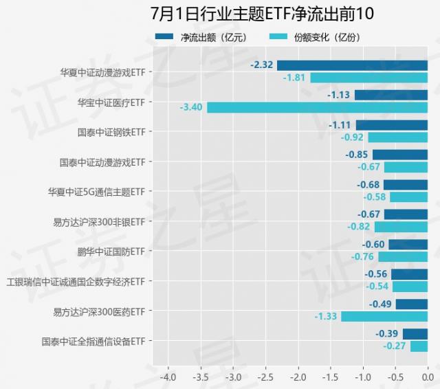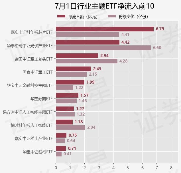 行业主题ETF7月1日净流入16.99亿元