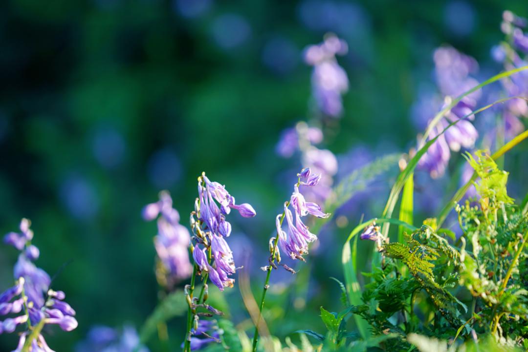 在玉簪花的紫色场景中