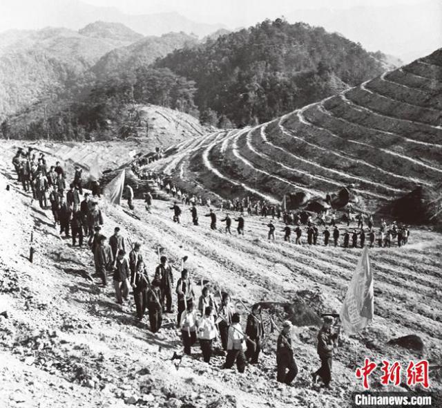当初岳山造林大会战现场 ( 资料图 ) 。方权裕 摄