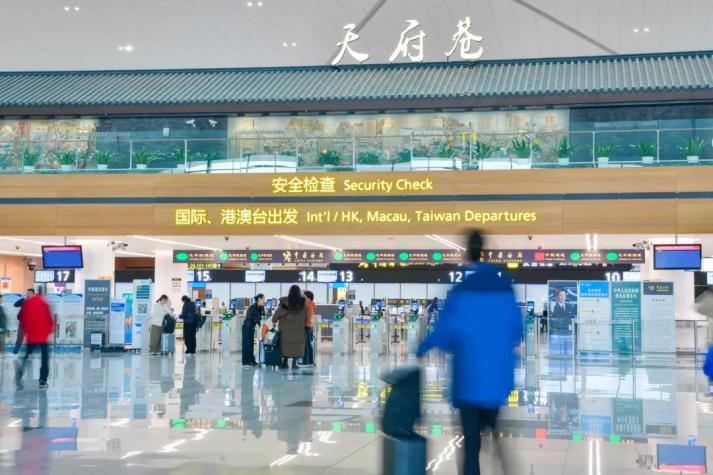航道通达是“流量”增长的关键,方便中转是核心。“针对国际向国际转移、国际向国内转移、国内向国际转移三个方向的航班,我们扩大了国际通行旅客休息区,增加了中转安检通道,大大提升了中转体验。据天府机场相关负责人介绍,天府机场还联合驻地单位将国际最短中转时间缩短至90分钟,联合航空公司推出19条国际航班。此外,在国内航班中转便利化服务方面,增加了武汉、青岛、长沙、林芝等省外机场的跨航空公司“一次值机、直挂行李”服务。目前,该服务已覆盖省内外22家机场和25家航空公司,创新推出空铁联运乘客隔夜中转行李便捷拖运服务。