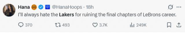 湖人队当地球迷:我总是对湖人感到愤怒,因为他们毁掉了勒布朗职业生涯的最后阶段。
