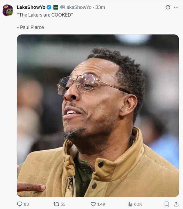 在谈到湖人队休赛期的运作时,皮尔斯说:“他们已经失败了。