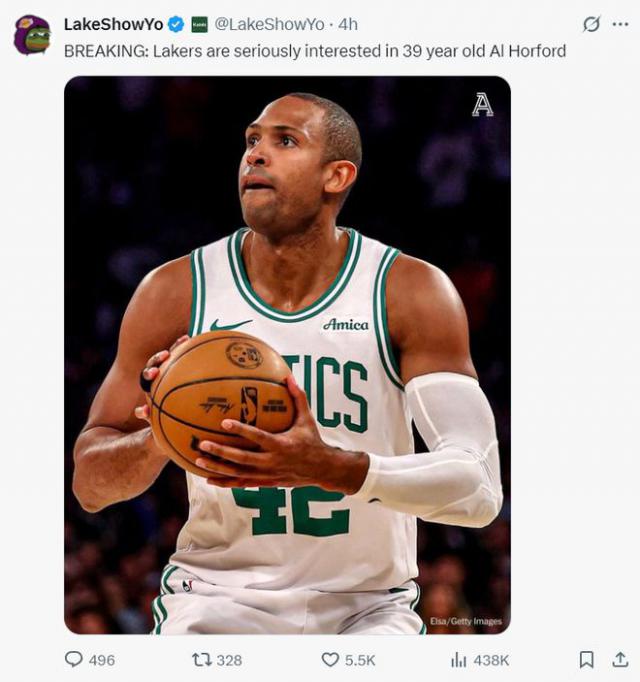 北京时间 7 月 2 日本,关于洛杉矶湖人队的最新信息,球队目前正在引进。 39 艾尔,一位年轻的中锋 - 霍福德非常感兴趣。
