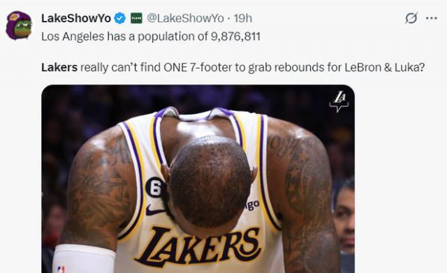 湖媒:洛杉矶的人口是 9876811 人类,为什么湖人队找不到为詹姆斯、东契奇抢篮板的中锋?