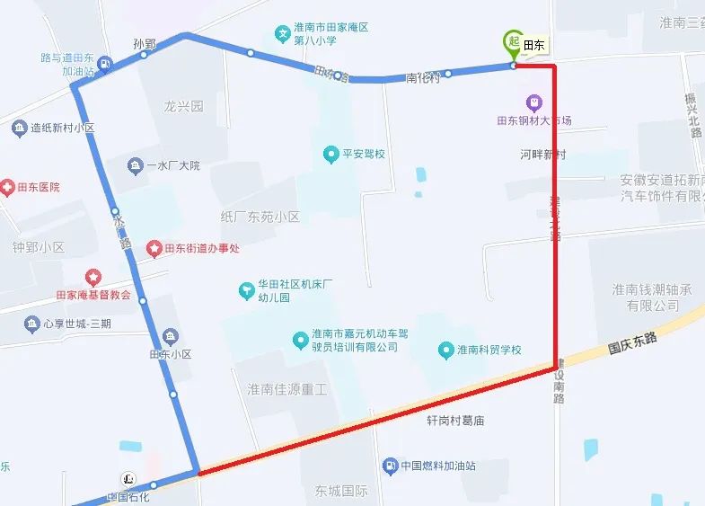 121路由“田东”站发班经北路、国庆路恢复原线运营。
