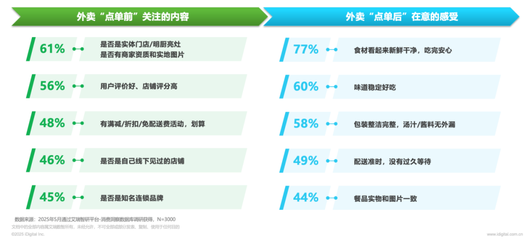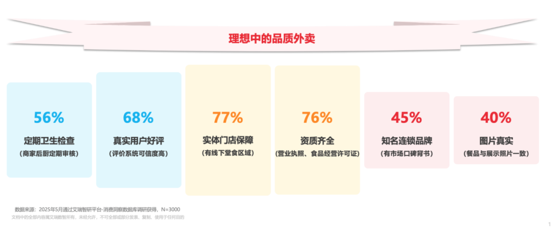 这与客户对优质外卖的关键需求完美契合。根据艾瑞的咨询,消费者将“拥有实体店”纳入优质外卖的首要标准,其次是完整的资质。