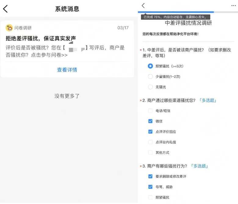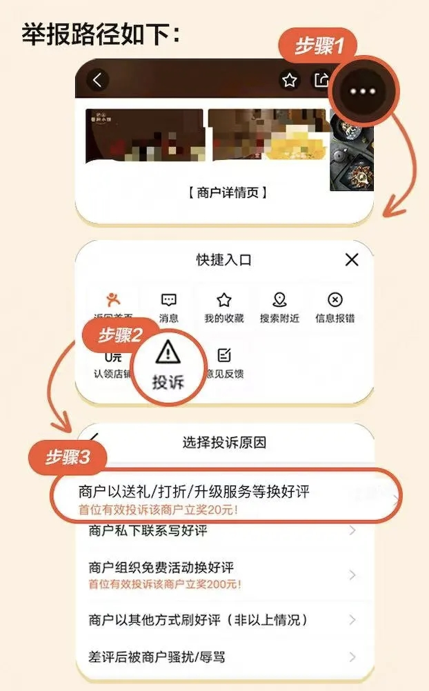 此外,在此频道改版升级之前,美团还推出了全员监督制度,开启了一键投诉功能,针对消费者吃饭时受到好评、写真实差评被骚扰的问题。