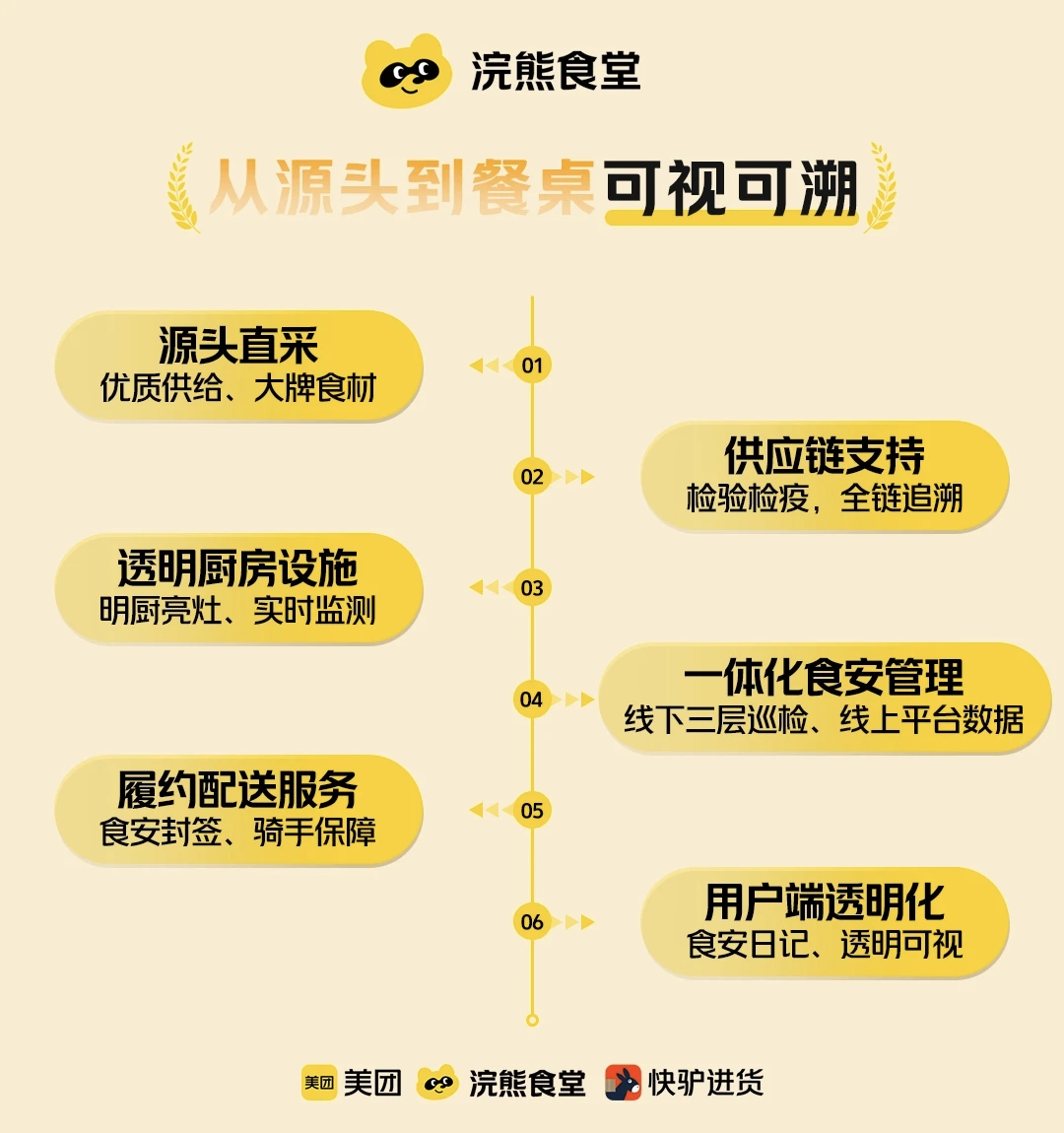同时,在近半年的试点工作中,美团浣熊食堂探索出了一套从产地到餐桌可视可追溯的管理方法,在一定程度上可以实现全链路可追溯透明的安全外卖方式。