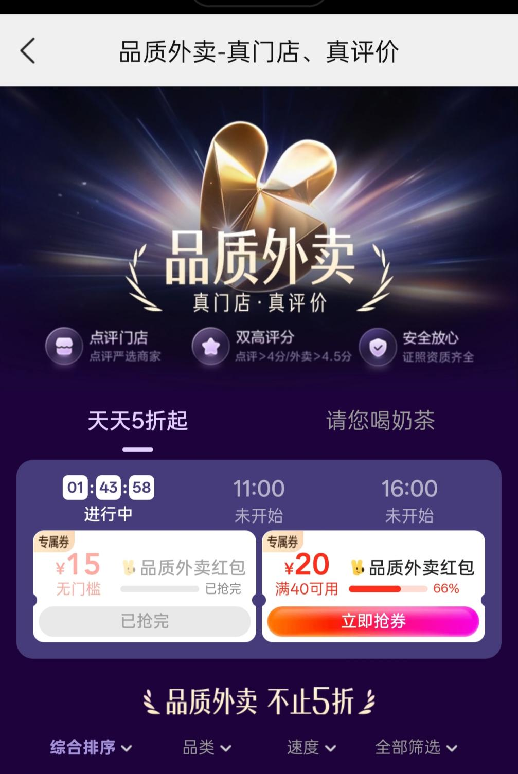 具体来说,入驻“优质外卖”的商家都是公众评论严格选择的商家,评价>4分,外卖>4.5分,证件资质齐全,主要推广“真店,真评价”。