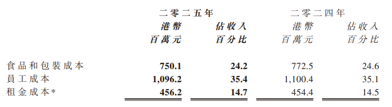 报告期内,除了租金成本外,大快乐集团的食品和包装成本以及员工成本都有一定程度的降低。具体来说,食品包装成本从去年的7.73亿港元下降到7.50亿港元,而员工成本下降了400万港元。