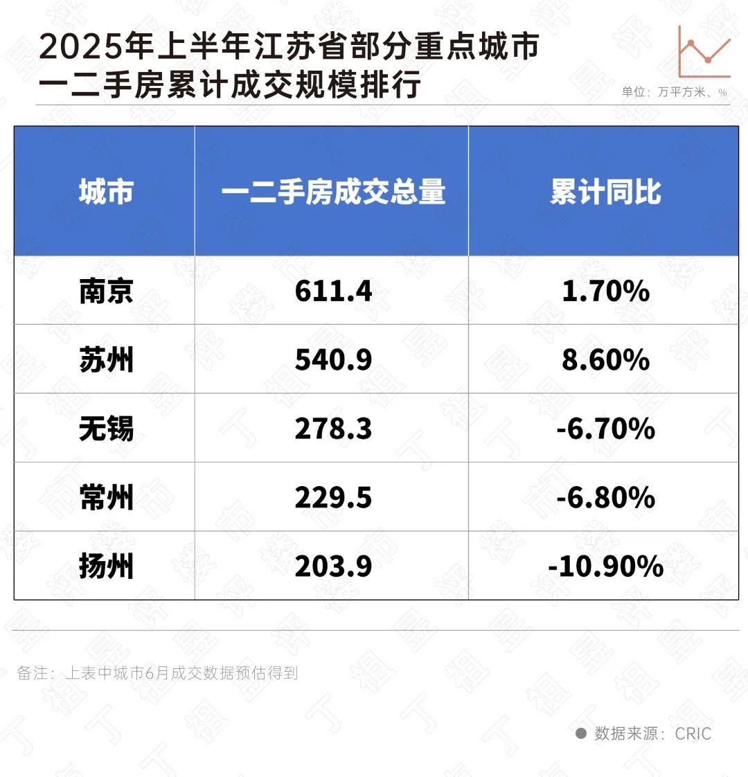 就一二手房总成交量而言,上半年,南京一二手房总成交量达到611.4万平方米,位居全省第一。虽然苏州总成交量弱于南京,但累计同比增速排名第一,一二手房总成交量同比增长8.6%。