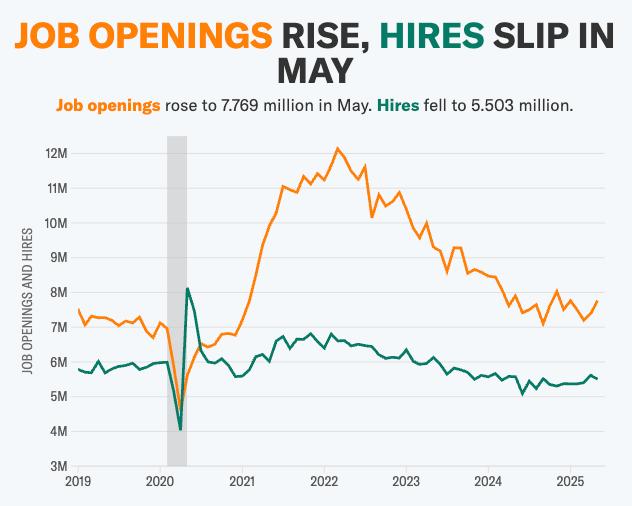 随后发布的6月份PMI数据和5月份JOLTS职位空缺数据都远远优于市场预测,强大的经济信号进一步削弱了市场对美联储近期降息的预期,给美股带来了一定的压力。