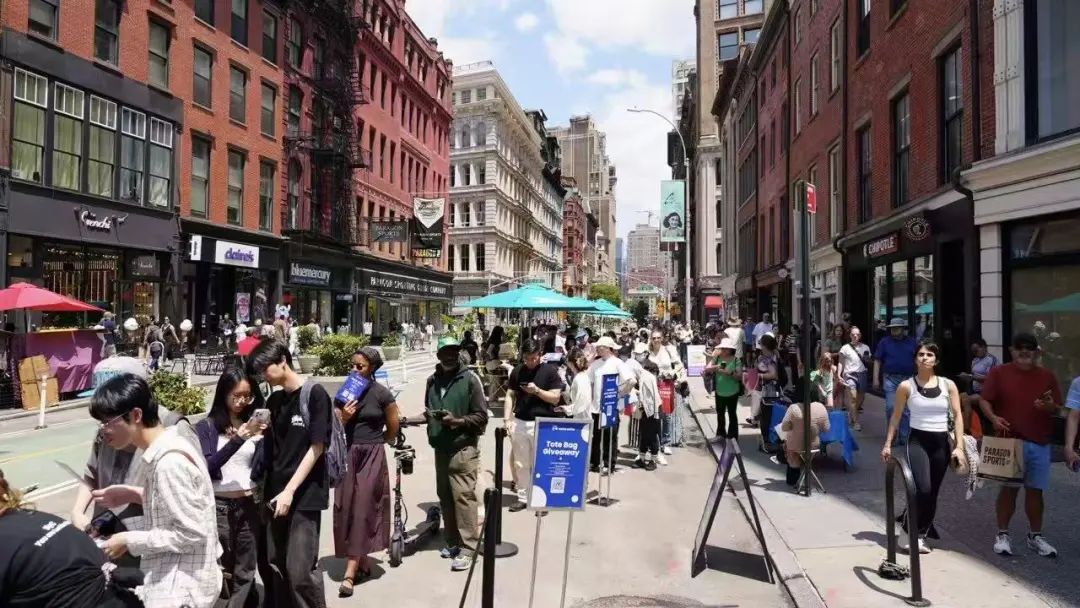 值得注意的是,瑞幸早在正式开业前十天就已在纽约街头试水。他们从六月二十日到二十四日继续在联合广场,SoHo、麦迪逊广场和先锋广场举办了四场闪光活动。每一站都位于纽约最热闹的地区:拥挤的人群和浓厚的社交氛围,是潮人、白领和游客聚集的标志性区域。