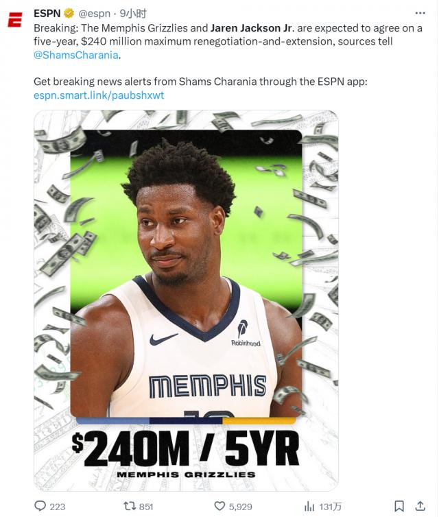 目前灰熊和 JJJ 方大概率已经开始讨论了。如果后者态度真诚,这份合同不会有问题。如果后者态度不是那么正确,恐怕这份传说中的超级合同很有可能会被撤回。 ...