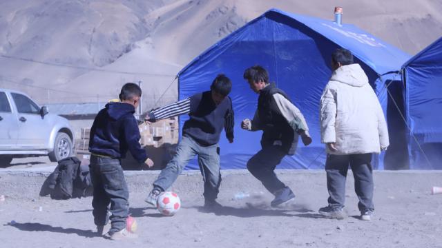 1 月亮,牦牛队的孩子们在安置点踢足球。汪海鲸摄