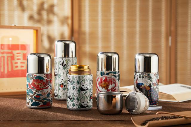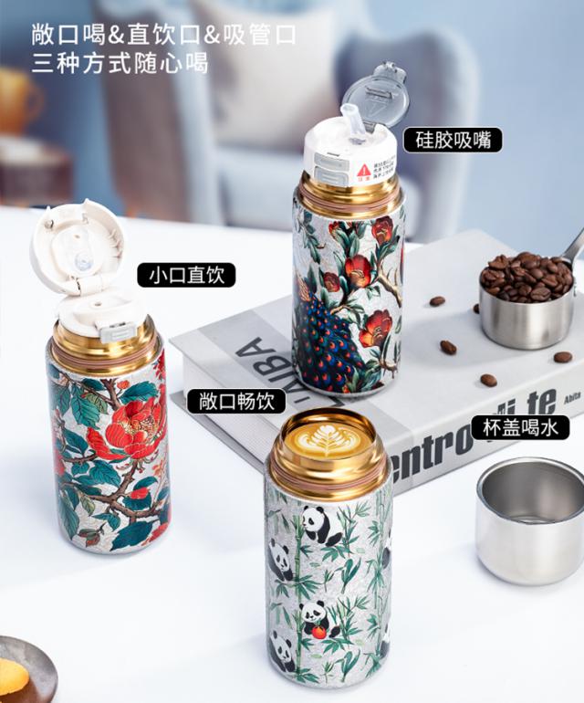 钛国风胶囊保温杯:孔雀、熊猫、吉祥牡丹、富贵牡丹