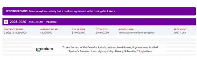 北京时间 7 月 3 德安德烈烈的自由球员 - 艾顿和湖人队达到了两年的价值。 1660 万的加盟协议,本合同的起薪是 810 一万美元,第二年为球员选择。在自由市场上,洛杉矶湖人也终于完成了第二次签约。