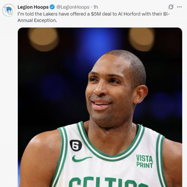 除此之外,还要看美媒 Legion Hoops 据报道,湖人已经使用了价值。 510 两年一万的例外价格是艾尔。 - 霍福德,佩林卡很想引进霍福德, 39 老将空间型内线。