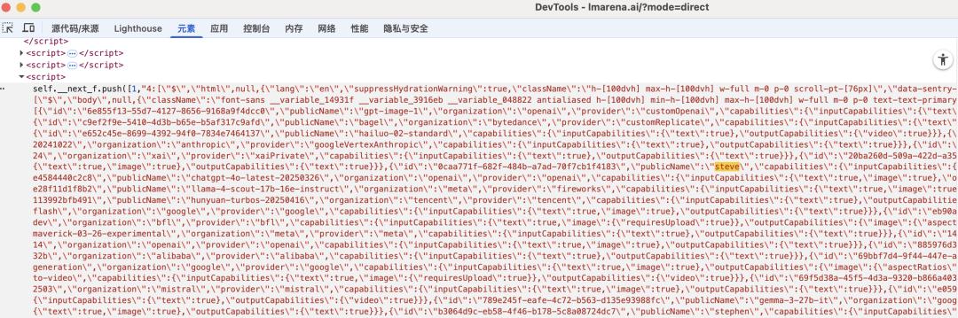 虽然steve在模型竞技场的公开页面上找不到,但是,仍然可以在前端代码中找到steve的痕迹。。
