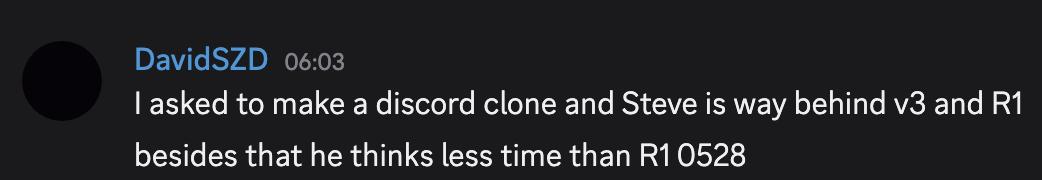 其它网友也表示,steve的表现远远落后于v3和R1,而且思考时间也比R1短。