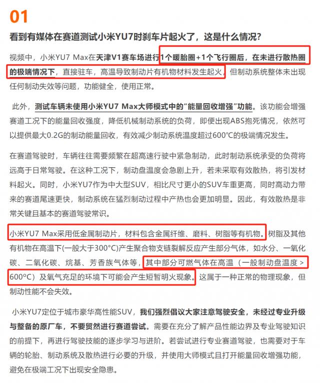 但是不管是从媒体的表达,还是小米的回应,在整个测试过程中,YU7 刹车系统没有发生故障,本质上没有什么大问题。