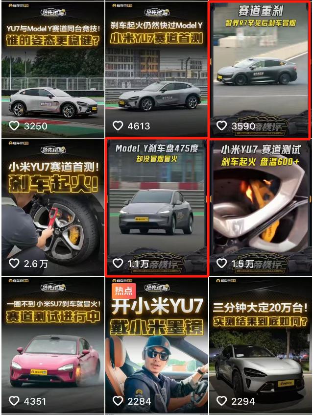 而且大家都很关心 YU7 刹车起火,原因是小米卖得太好了,你换个牌子,也许整辆车都没人在意。