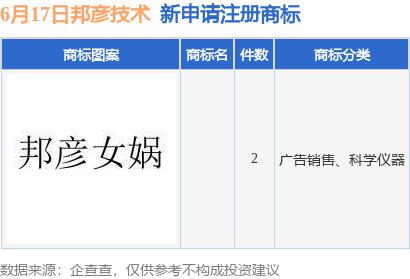 证券之星消息,根据天眼查 APP 资料显示,最近邦彦科技有限公司新递交 2 商标申请。商标申请的详细信息如下:
