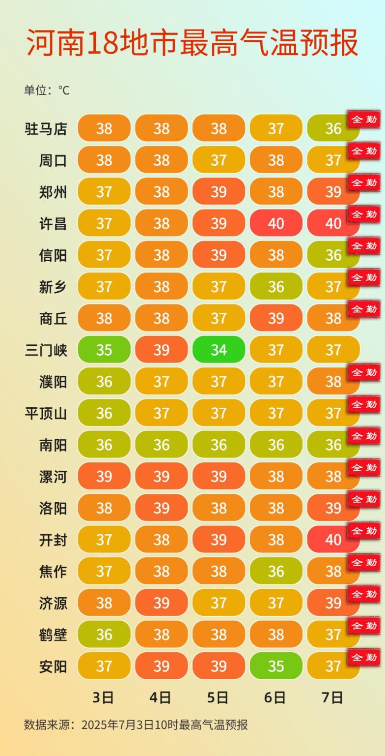郑州最高气温38~39℃