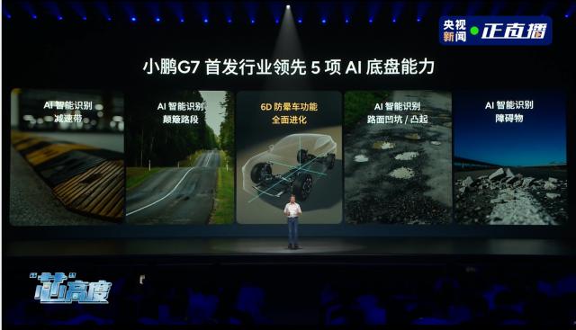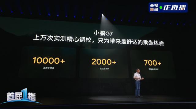 何小鹏说,小鹏 G7 进行了数万次减速带检测, 2000 还有次起伏路检测 300 第二天早晚高峰标定,积累大规模情景经验,乘坐体验更加舒适,应对复杂路况更加轻松。
