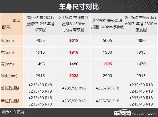 车身长度方面,银河星耀 8 性能最好,长度、总宽度、轴距都有优势。不过毕竟四款车都是中大型车,车身长度差距不大,都处于同级别的主流水平。