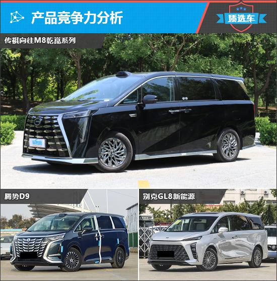 近几年,国内大中型 MPV 随着市场的不断升温,自有品牌开始发力,推出了各种竞争车型。本期的主角传祺期待 M8 这个系列就是其中之一。结合市场定位、插电式混合动力系统和 35-40 一万元的价格区间,最后为其选择的竞品车型分别是腾势 D9 和别克 GL8 新能源。