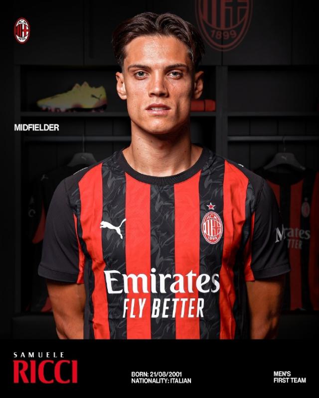 AC 米兰正式宣布将签署意大利中场萨穆埃莱,从都灵俱乐部。 - 里奇。球员已经和俱乐部签约 2029 年 6 月 30 每天,俱乐部都有合同延长到合同。 2030 年 6 月 30 一天的优先事项。他的转会费是 2300 万欧,外加 200 万欧波动条款。