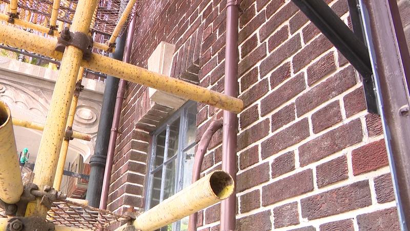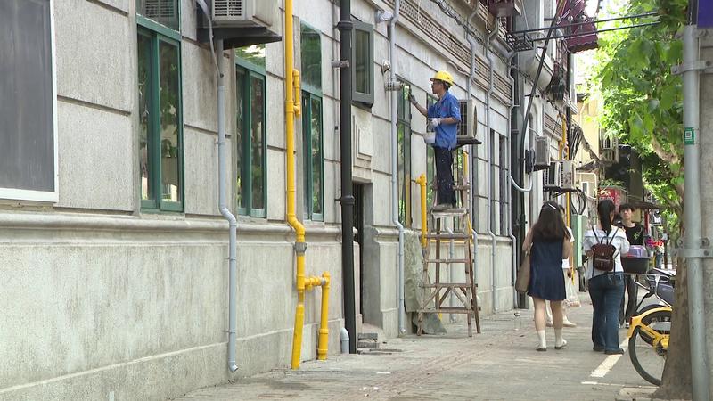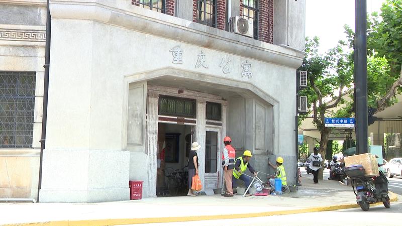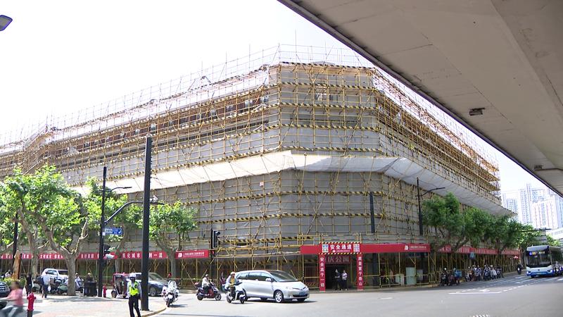 经过100天的整修,位于重庆南路复兴中路口的百年建筑——重庆公寓修缮工程已基本完成,脚手已落架。