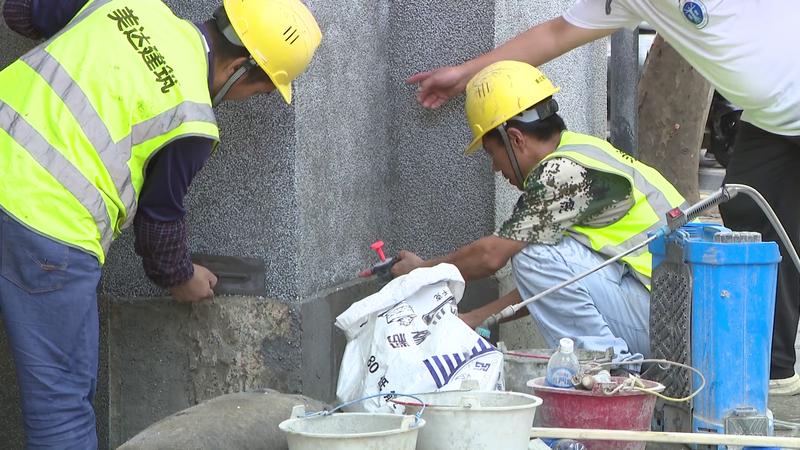 据报道,这次装修最难的是清洗外墙上的水刷石。师傅告诉记者:“水刷石以前有老漆。先把墙清洗干净,然后把空的做掉。去掉后,有些地方会粗糙,然后刷水刷石,保持墙面平整,然后用水冲洗。”
