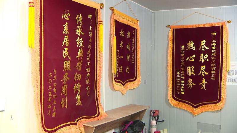 共有160多户重庆公寓。居民家庭的阳台、晾衣架、空调架等都在这次整修过程中进行了整修。由于许多居民在重庆公寓住了很多年,大部分都是老年人。施工方在整修过程中,根据老年人的特点进行了管理结构模式。陆佳告诉记者,整个项目有三个小组,一个是居民投诉回访小组,主要解决居民的一些投诉问题,如噪音和灰尘。二是施工问题处理小组,其主要任务是协调一些安装问题的位置,如雨棚、伸缩衣架等。第三组是文明施工措施组。主要施工任务是确保现场整洁,关闭门窗。此外,还有噪音问题,最大限度地减少对居民生活的影响。