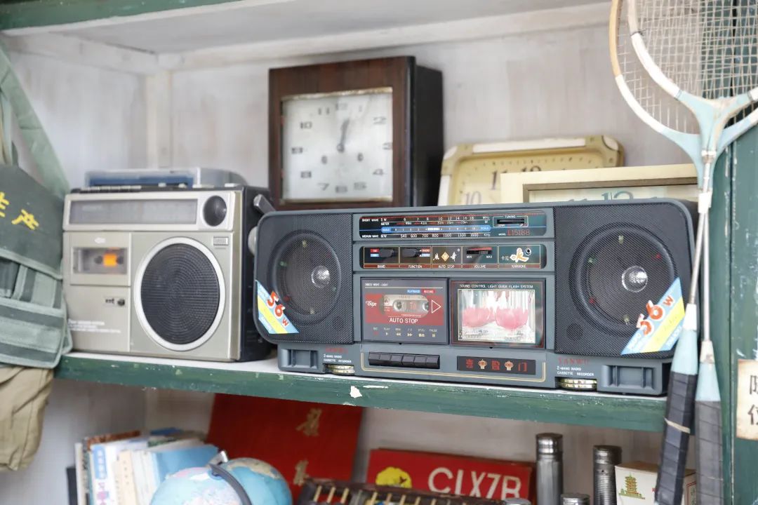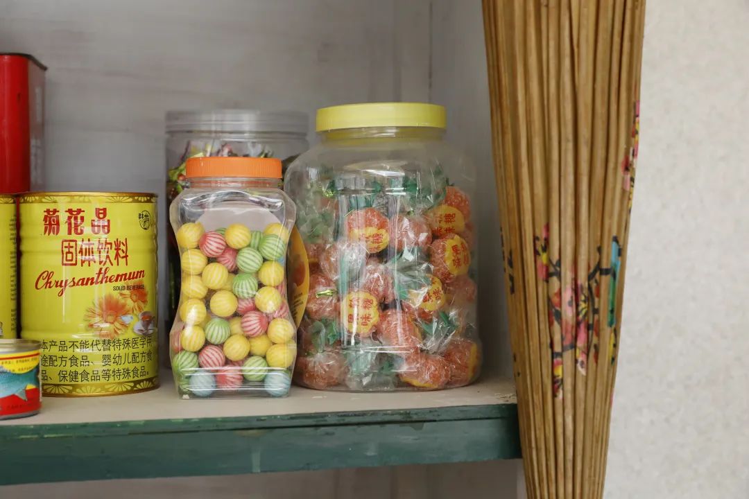 菊花晶体、乐口福、无花果、喔奶糖、收音机、霸王学习机、理发推剪...小时候的零食和日用品整齐地放在货架上,让我想起了满满的回忆。