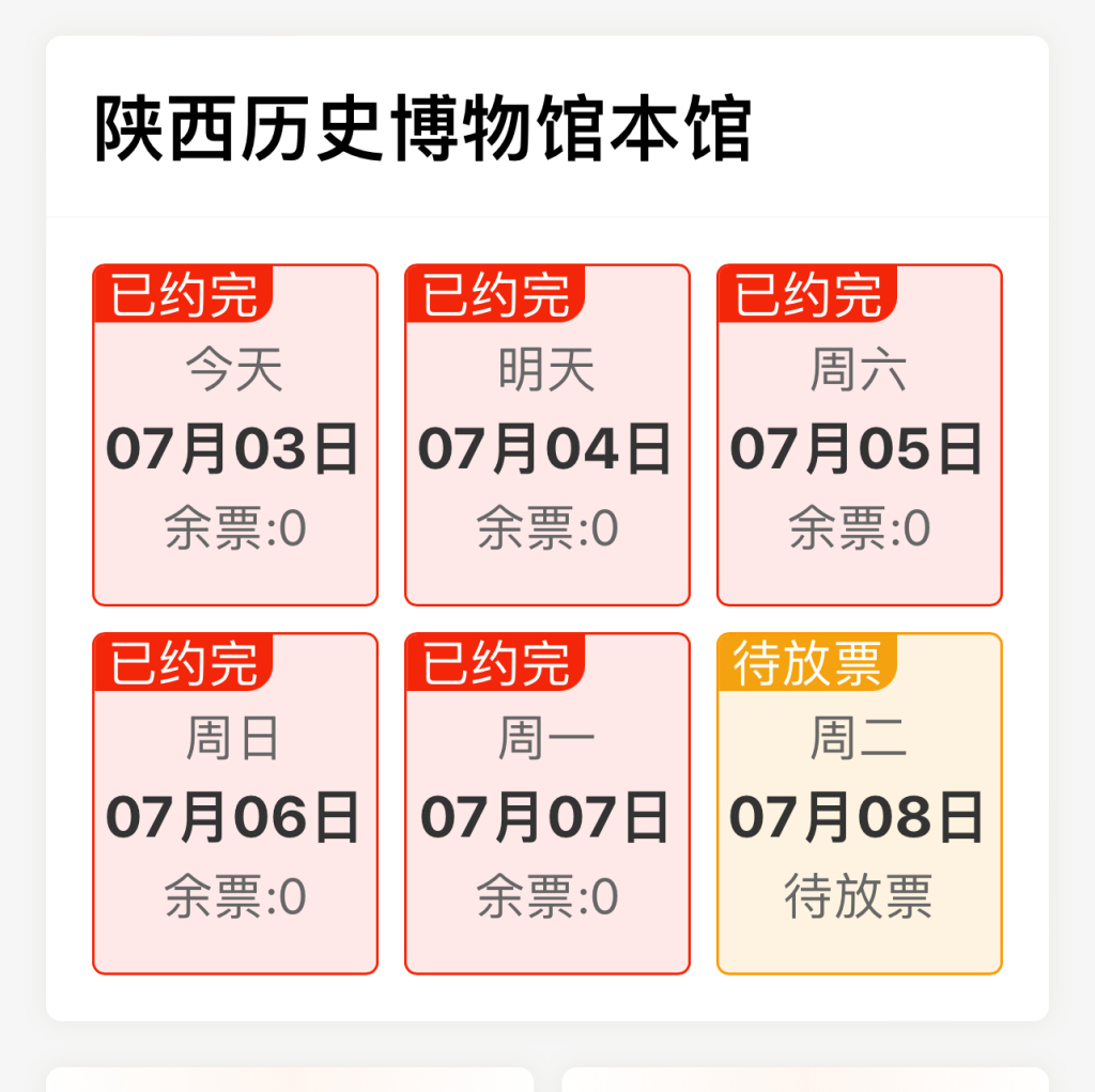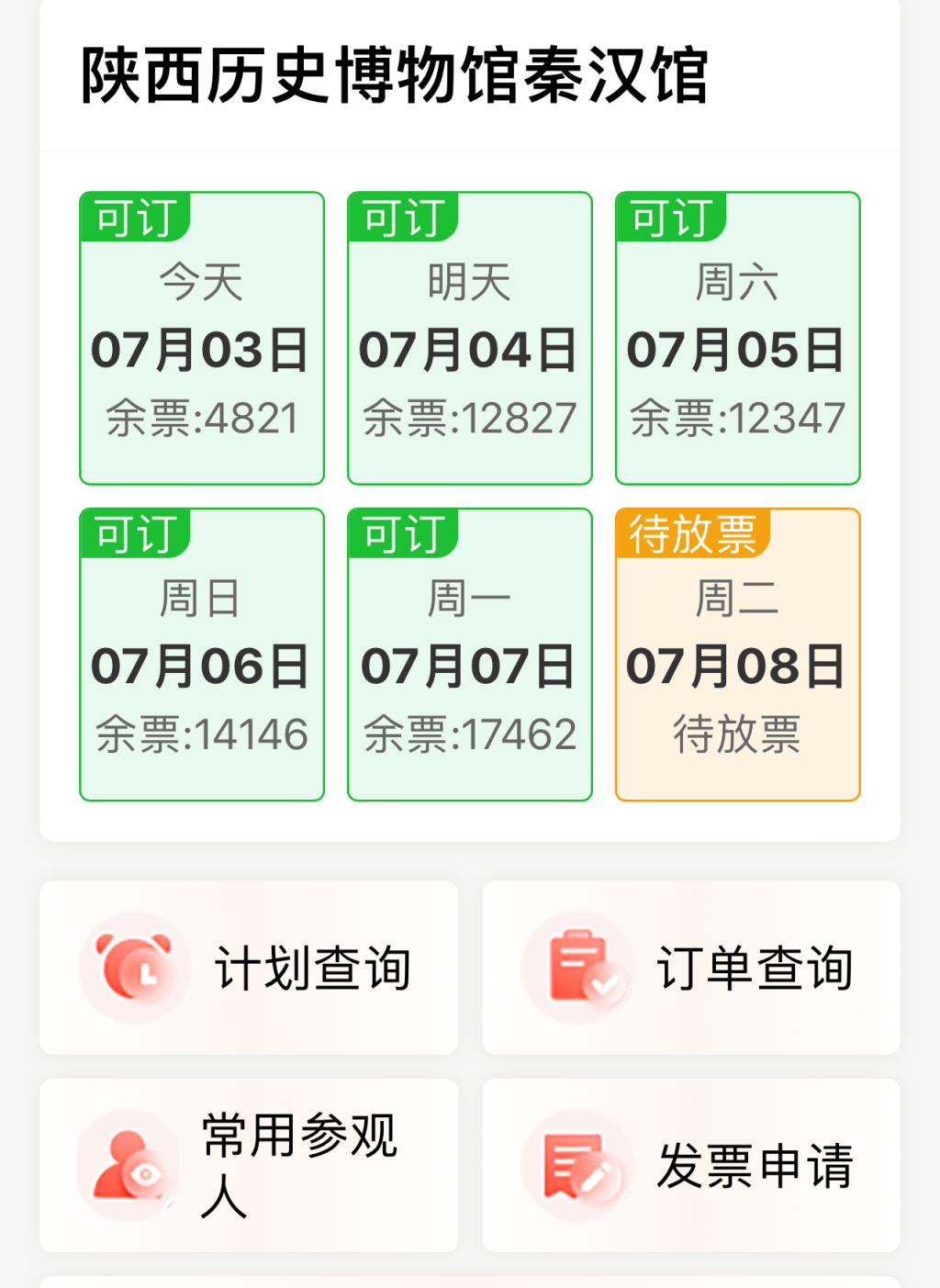 七月三日下午,陕历博秦汉馆预约显示余票充足。