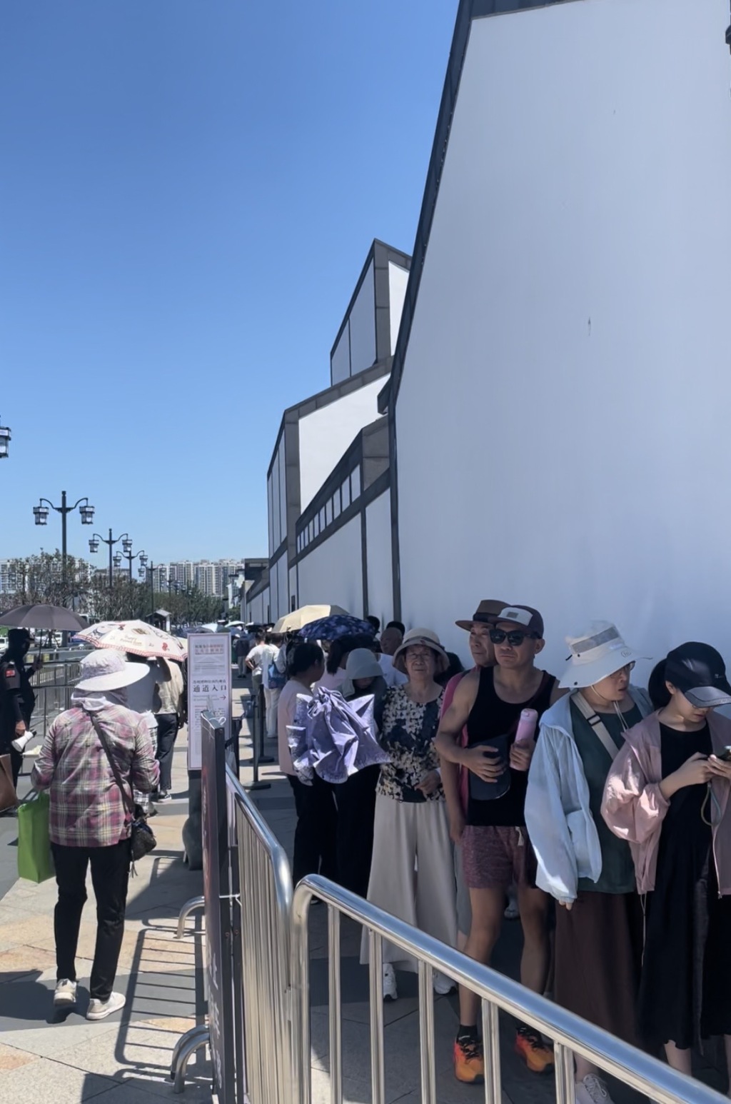 7月3日,在苏州古城炎热的阳光下,建筑师贝聿铭设计的文化地标——苏州博物馆大厅门口,山东旅客吴女士正在排队带孩子。她告诉《ThePaper》:“苏博本馆很难预约,动员家人用几部手机刷了几天才预约成功。”