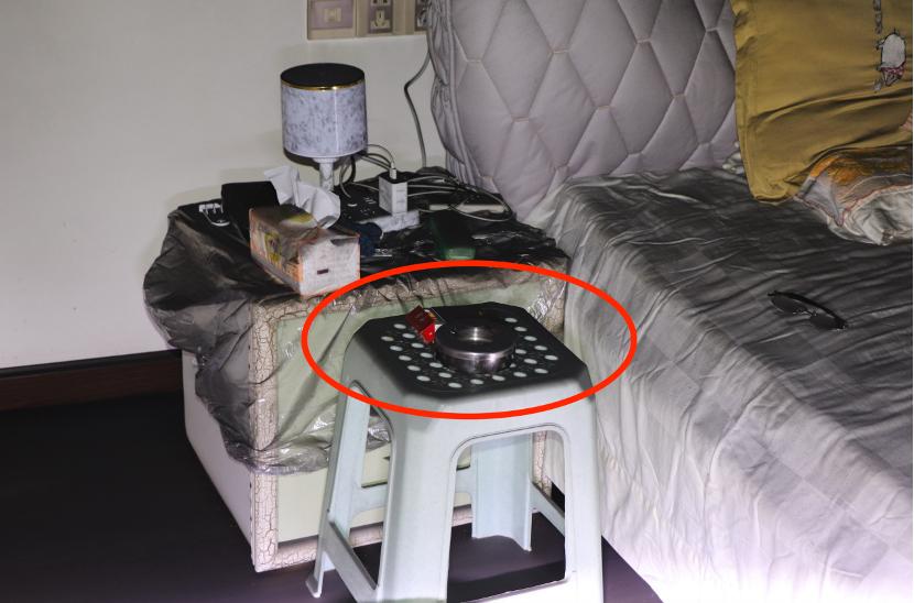 ▲红圈是曾某某每天使用的烟草和烟缸。
