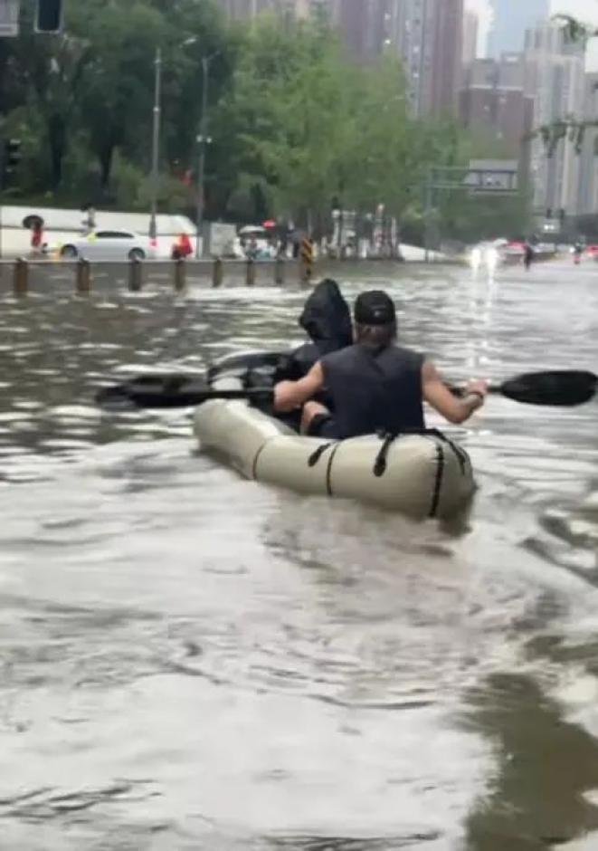 3日,成都遭遇大雨,部分街道深层存水可达膝盖。一段成都市民在路上划船的视频迅速走红。有网友笑着说,这是成都人的放松。