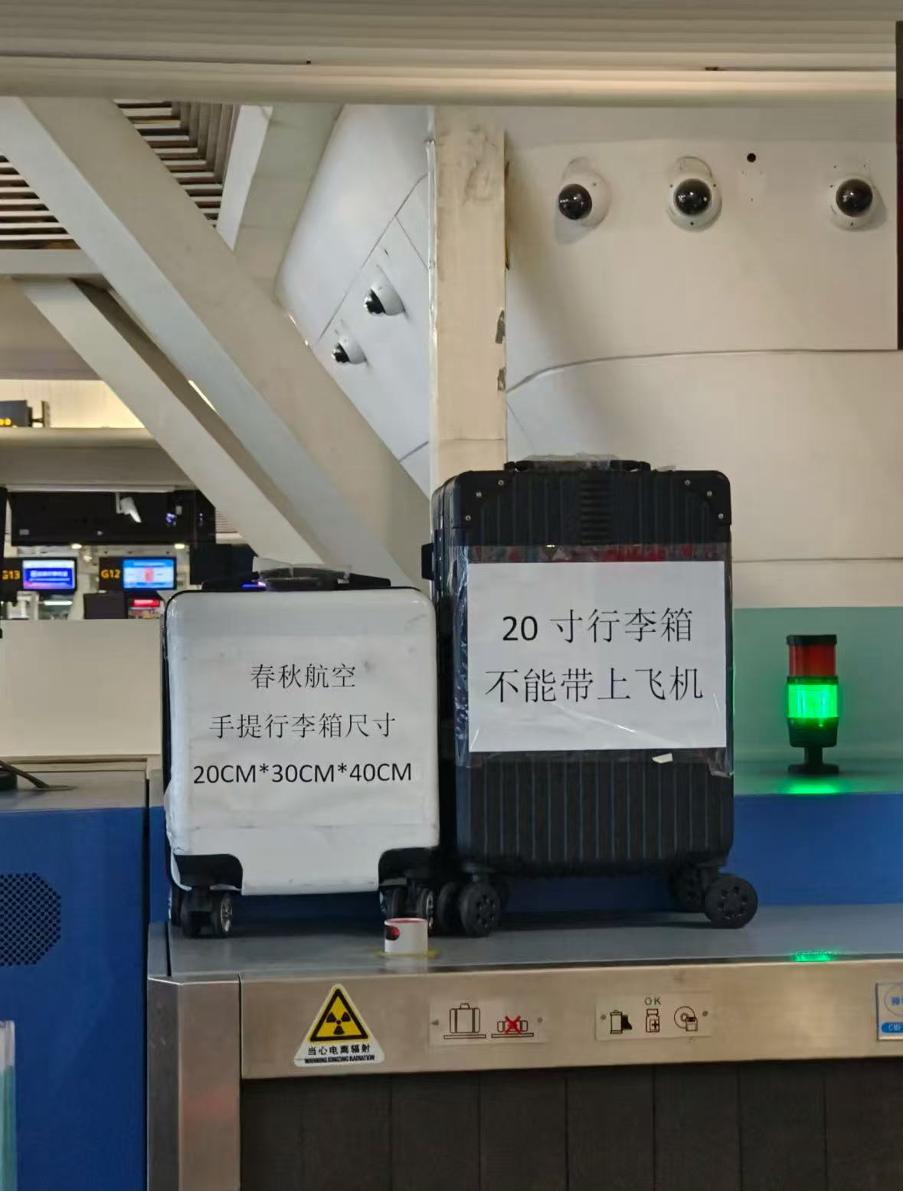 全部为20寸旅行箱,春秋也分“高低贵贱”:“超惠飞”“尊享飞”的乘客不能带,但是购买“尊享飞”价格机票的乘客可以带。