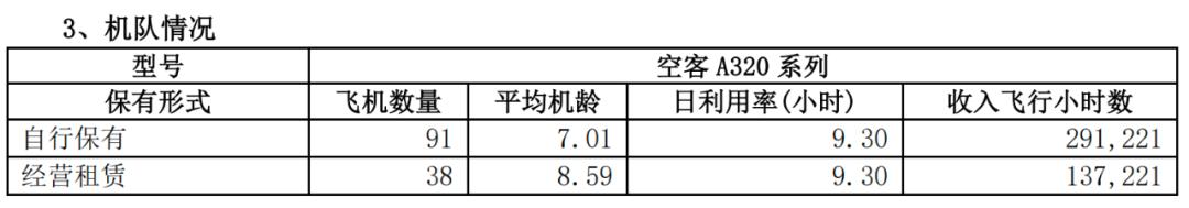 根据春秋航空2024年年报,截至2024年底,公司拥有空客A320。 一系列型号机队共同 129 架子,其中自购飞机 91 架, 经营租赁飞机 38 架子,平均机龄 7.5 一年;A321neo 型号飞机 12 架,均是 240 机舱布局; A320neo 型号飞机 42 架,A320ceo 型飞机 75 架,包含 186 座机舱布局 92 架以及 180 座机舱布局 25 架。
