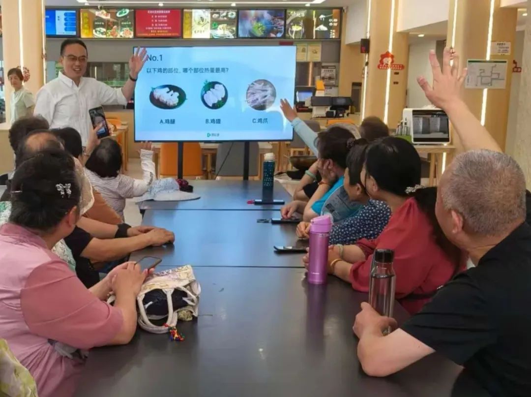 天龙“生活盒”作为“健康街区”新时代文明实践基地的明星项目,这次在科学饮食理念上发挥了新的作用。课堂以有趣的问答开始,“炸鸡和薯条谁的热量更惊人?”“红烧茄子竟是隐藏的高油菜?“一系列贴近生活的灵魂拷问,让居民在惊呼和笑声中认识到日常饮食的健康盲点。营养师拿着食物金字塔模型,像拆解食物密码一样分析油盐摄入的“黄金法则”。居民举起手机拍摄知识点,并在笔记本上记录“每日盐不超过5克”、“油保持在25毫升”等实用提示。