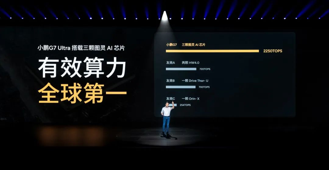 Ultra版,售价22.58万元,以上两部分更换了骁龙9295和三个小鹏自主研发的图灵AI芯片,综合算率达到2250TOPS。