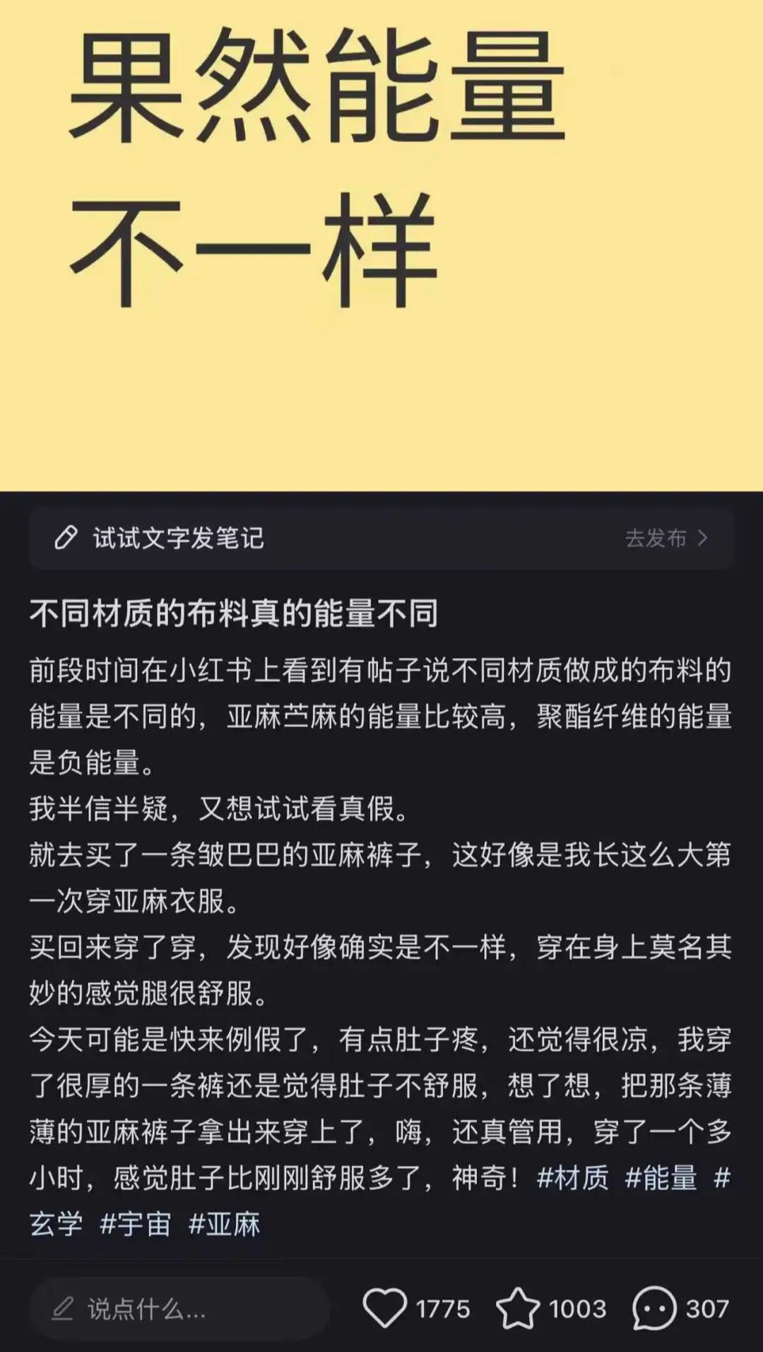 实际上,亚麻也是玄学跑道上“能量频率”的超能源。