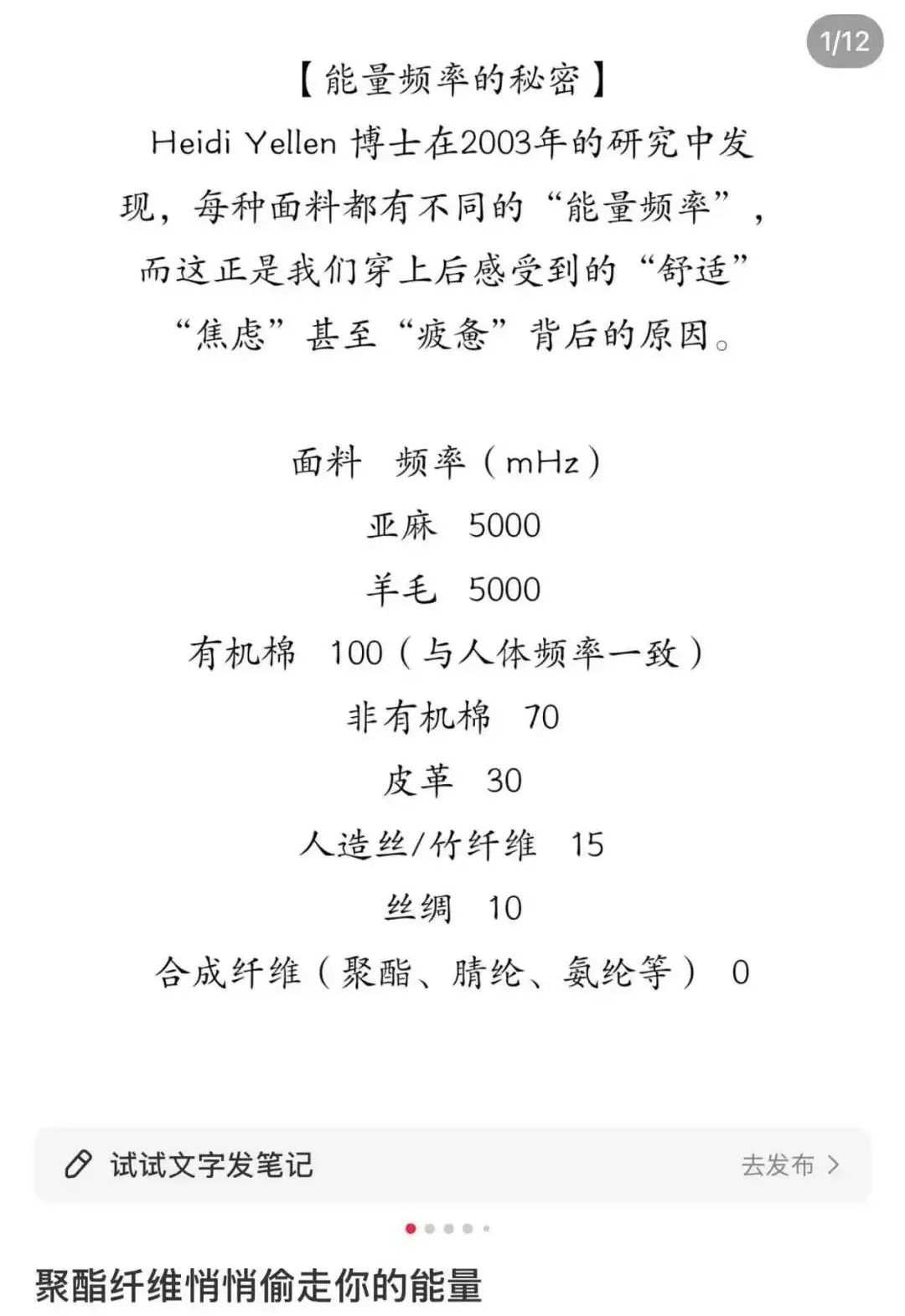 而且人造纤维的能量自然为0,长时间穿着甚至会“偷走你的能量”。