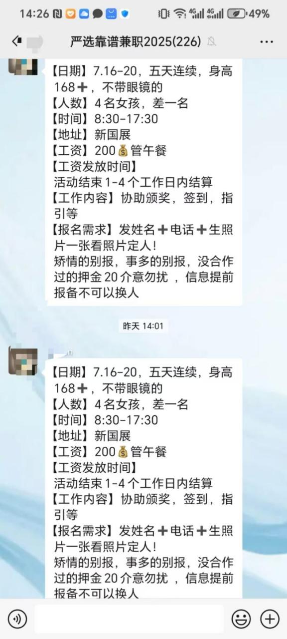 常规兼职人员资料,展会兼职有形象要求(受访者提供图片)