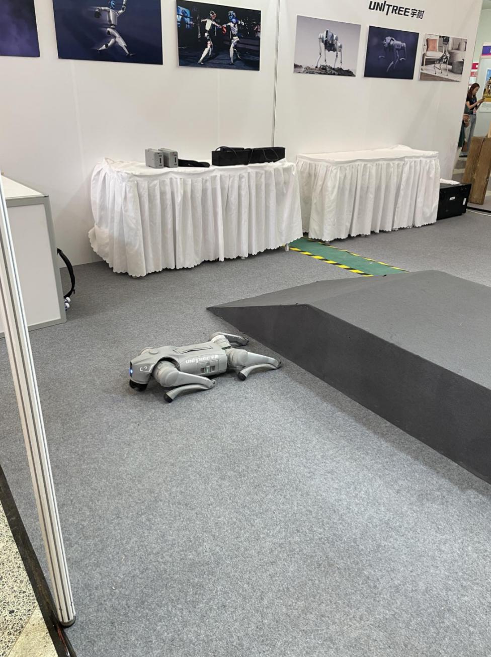 在展览中偶遇休息的宇树机器狗(受访者提供图片)
