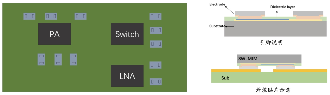 MIM电容器的小体积优势适用于高密度集成,低温漂移指数保证了电容值在不同温度环境下变化不大,保证了电路性能的稳定性,广泛应用于射频匹配电路等。