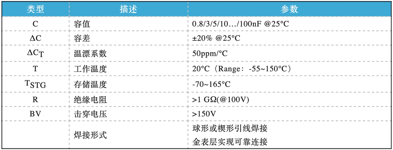 SW-MIM硅电容采用平面薄膜沉积和图形化工艺,使其具有精度高、频率好、精度高、体积小、漂移指数低、性能稳定等优点。